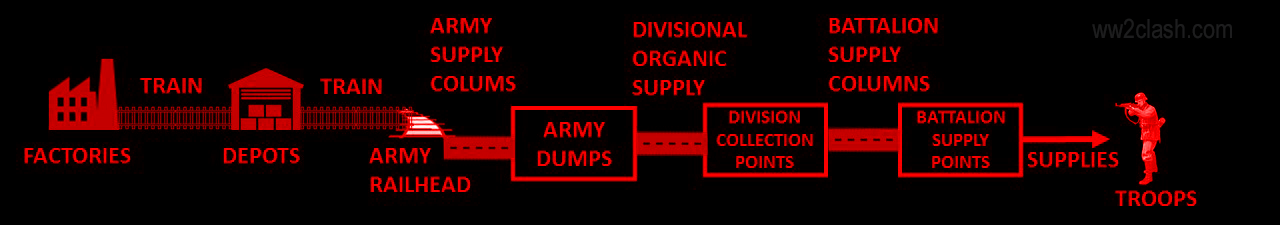 The winner in a battle is usually the side that achieves fire superiority , so it is essential to keep the stream of ammunition and fuel flowing smoothly. After an intense battle, ammo levels diminish very rapidly because troops, vehicles, and guns have quite limited capacity to hold stocks and an enemy counterattack with a fresh unit is usually enough to place friendly units in dire straits. Unless the friendly troops receive ammunition on time or a supplied unit takes their place, they may find necessary to retreat to avoid annihilation. This is one of the reasons many fiercely disputed locations changed hands often.