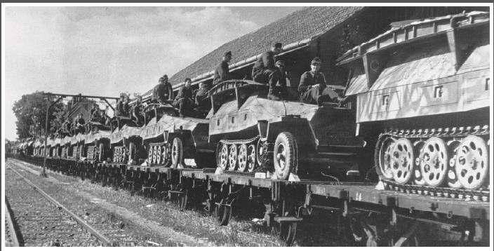 German train transporting troops. To save on fuel and wear and tear of vehicles, both combatants employed intensively trains for the redeployment of motorized troops behind the front. Most of the railroad traffic, however, consisted of supplies: ammunition, food, water, fuel, construction material, uniforms, spare parts, and thousands of other required items. Capacity was always in short supply, so the Germans placed significant efforts in transporting only what was necessary. Trains were of vital importance and consequently, the air forces of both sides made them principal targets. Picture from World War II Zone.