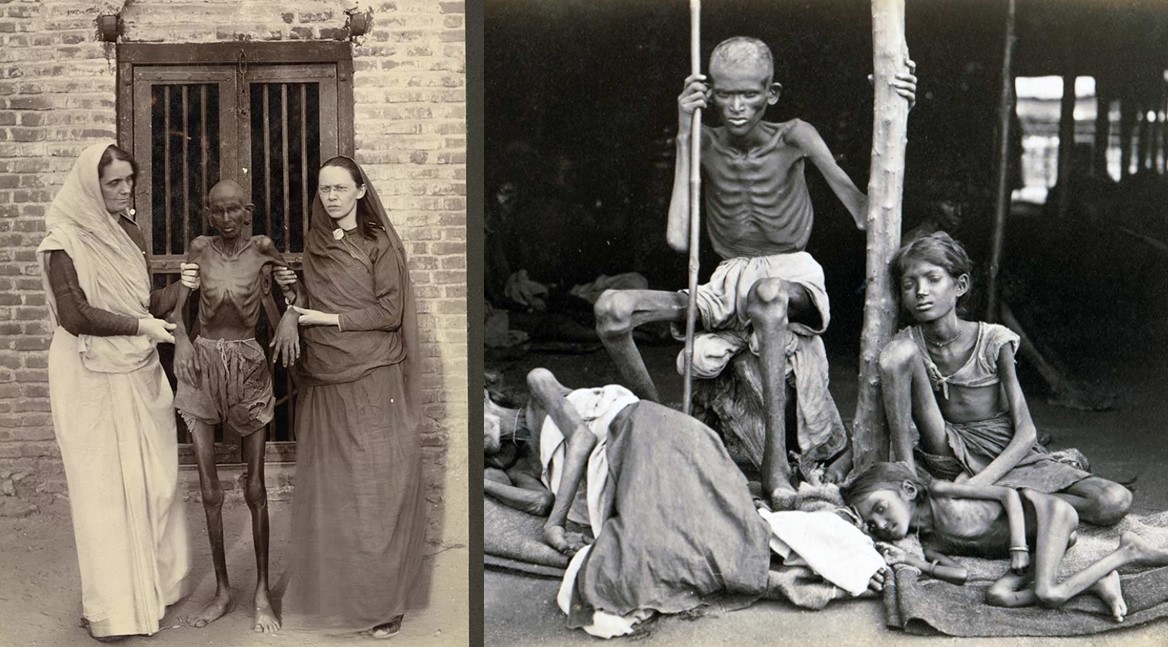 To its credit, the British government implemented some benefits for the destitute before 1910 (minimum wage, pensions) but they amounted to mere crumbs. If the conditions of many white Britons living on the islands were dire, those of the dark-skinned conquered peoples in the colonies were worse. India's per capita income declined by more than 50% between 1850 and 1900 at a time when it was increasing in Great Britain . Crueler than poverty was famine. By 1902 the Britons had left to die between 12.2 and 29.3 million Indians by lack of food and associated disease while exports of wheat to Great Britain continued unabated .
