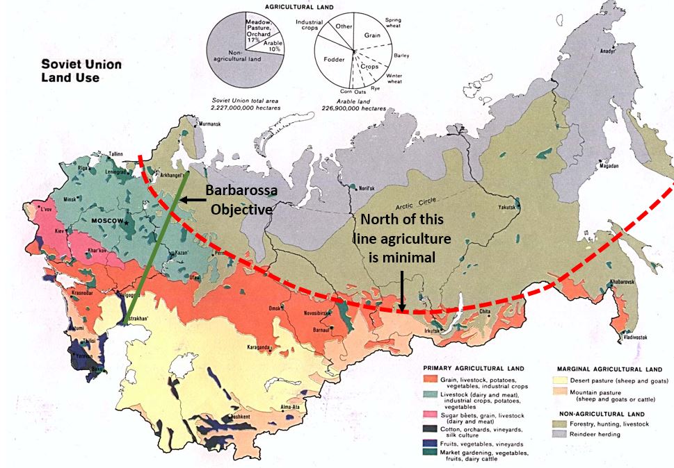 With 20 million square kilometers (7.7 million square miles), the size of a continent, the Soviet Union had enough land with the appropriate climate to cultivate food.
