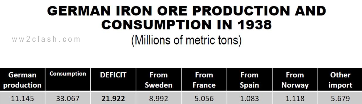 When the war started in September 1939, Germany was heavily dependent on iron ore imports for the manufacture of steel.