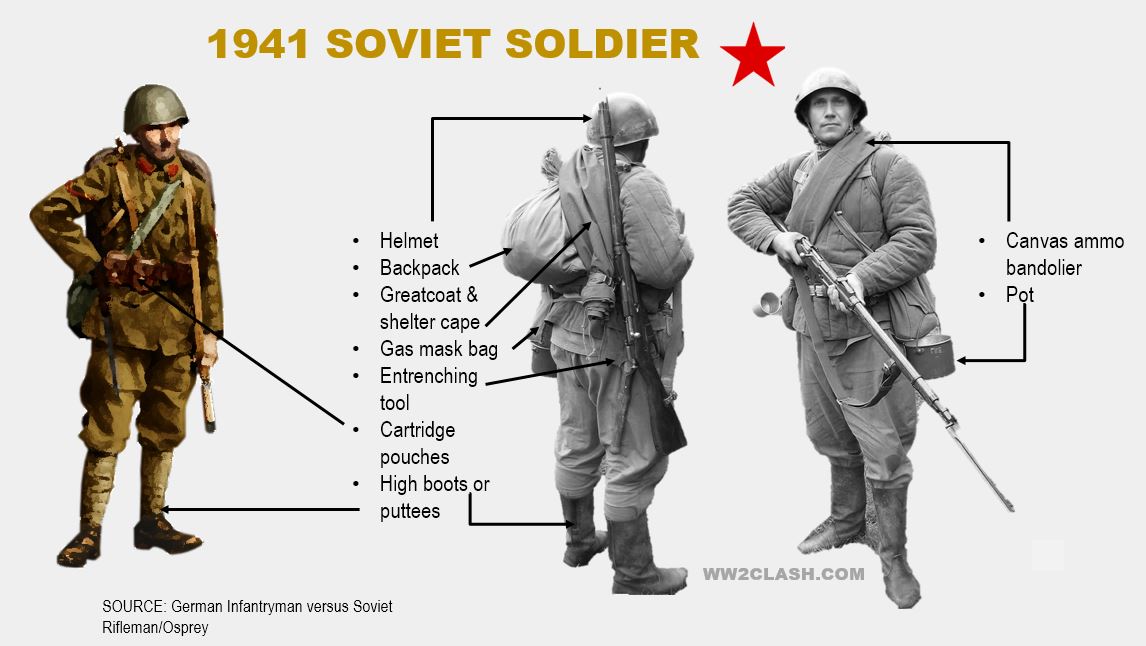 Since invisibility was out of the question, the next best thing is low-visibility. The uniforms were dyed in inconspicuous colors (green-gray for the Germans and brown for the Soviets) that blended more or less, with the surrounding terrain. Later, the Germans would introduce camouflaged outfits to increase concealment.