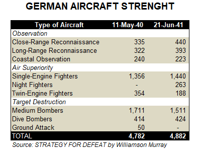 Taken as a whole 40% of the German air force structure was devoted to bombers.